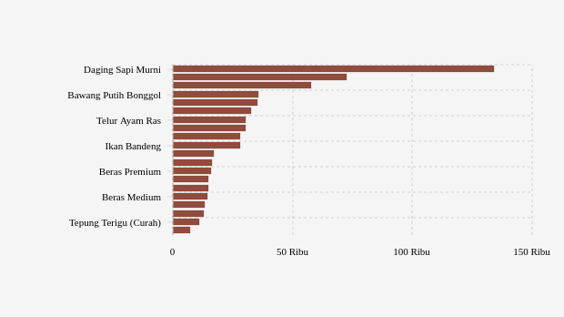 - Gula Konsumsi: Rp17.140 per kg (turun 0,17%)