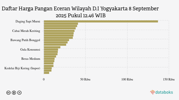 Berikut daftar lengkap harga 23 bahan pangan di D.I Yogyakarta menurut Bapanas 8 September 2025 pukul 12.46 WIB.