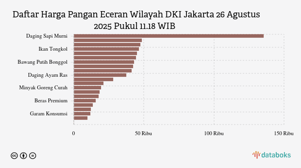 Berikut daftar lengkap harga 21 bahan pangan di DKI Jakarta menurut Bapanas 26 Agustus 2025 pukul 11.18 WIB.