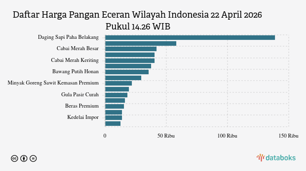 - Daging Sapi Paha Belakang: Rp136.563 per kg (turun 0,08%)
