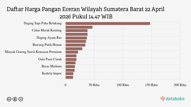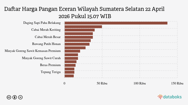 Berikut daftar lengkap harga 16 bahan pangan di Sumatera Selatan menurut SP2KP Kemendag 22 April 2026 pukul 15.07 WIB.
