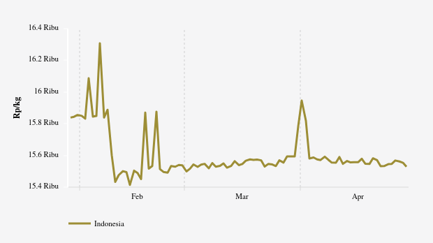 Berdasarkan data tingkat provinsi, harga komoditas ini bervariasi dengan kisaran Rp13.989 - Rp17.053 per kg.