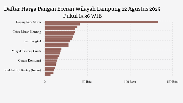 Berikut daftar lengkap harga 23 bahan pangan di Lampung menurut Bapanas 22 Agustus 2025 pukul 13.36 WIB.