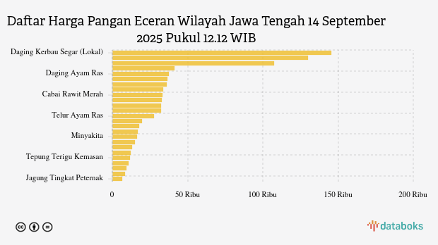 Berikut daftar lengkap harga 25 bahan pangan di Jawa Tengah menurut Bapanas 14 September 2025 pukul 12.12 WIB.