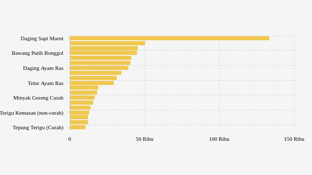 - Daging Sapi Murni: Rp133.250 per kg (turun 2,44%)