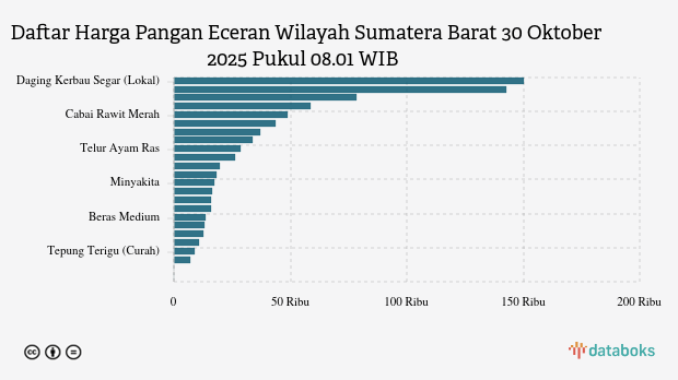 Berikut daftar lengkap harga 24 bahan pangan di Sumatera Barat menurut Bapanas 30 Oktober 2025 pukul 08.01 WIB.