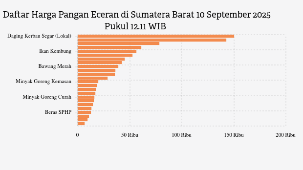 Berikut daftar lengkap harga 24 bahan pangan di Sumatera Barat menurut Bapanas 10 September 2025 pukul 12.11 WIB.