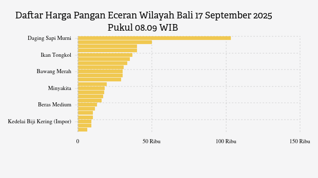 Berikut daftar lengkap harga 23 bahan pangan di Bali menurut Bapanas 17 September 2025 pukul 08.09 WIB.