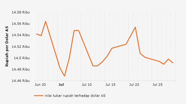 Nilai Tukar Rupiah terhadap Dollar AS (Kamis, 29/Jul) Rp. 14,491 per US$