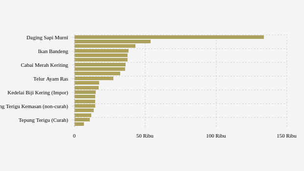 - Gula Konsumsi: Rp17.380 per kg (naik 1,46%)