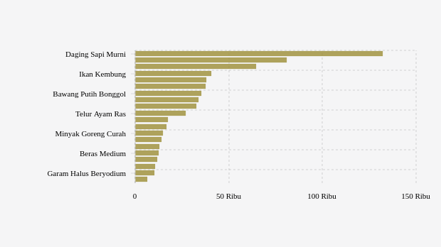- Gula Konsumsi: Rp16.810 per kg (turun 0,06%)