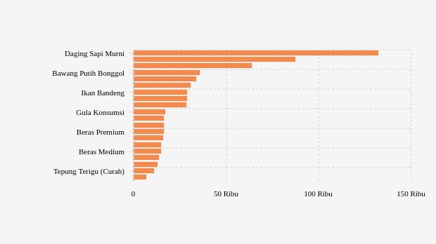 - Gula Konsumsi: Rp17.110 per kg (turun 0,06%)