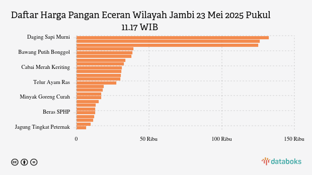 Berikut daftar lengkap harga 25 bahan pangan di Jambi menurut Bapanas 23 Mei 2025 pukul 11.17 WIB.