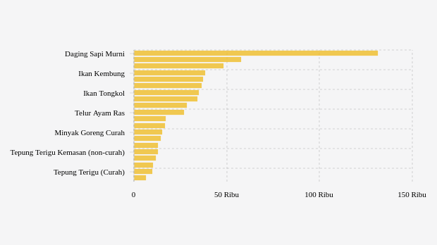 - Gula Konsumsi: Rp16.790 per kg (turun 0,53%)