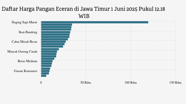 Berikut daftar lengkap harga 23 bahan pangan di Jawa Timur menurut Bapanas 1 Juni 2025 pukul 12.18 WIB.