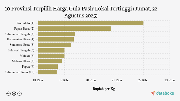 Harga Gula Pasir Lokal di 10 Provinsi Ini Paling Mahal (Jumat, 22 Agustus 2025)