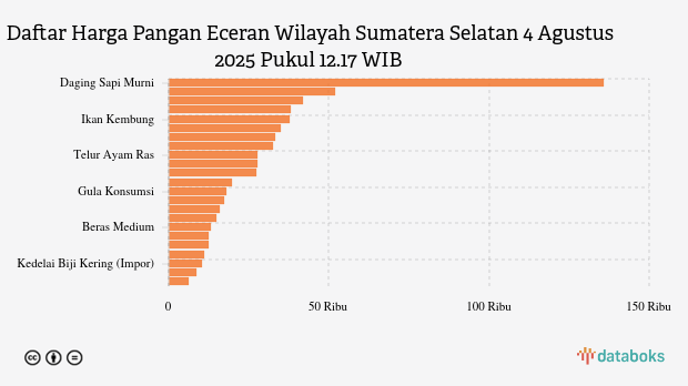 Berikut daftar lengkap harga 23 bahan pangan di Sumatera Selatan menurut Bapanas 4 Agustus 2025 pukul 12.17 WIB.