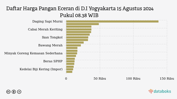 Berikut daftar lengkap harga 20 bahan pangan di D.I Yogyakarta menurut Bapanas 15 Agustus 2024 pukul 08.38 WIB.
