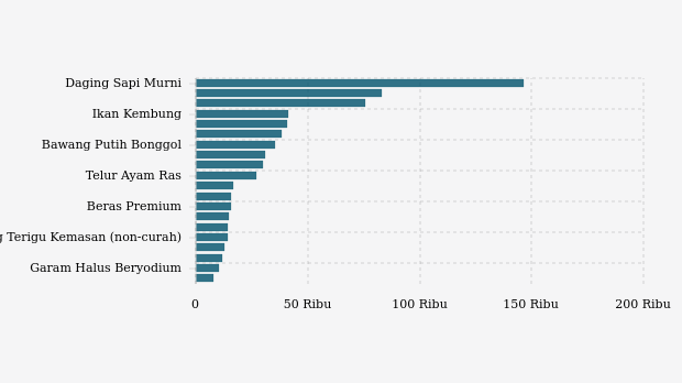 - Gula Konsumsi: Rp16.580 per kg (turun 1,37%)