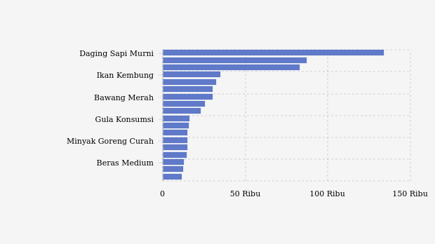 Komoditas yang naik harga yakni daging sapi murni, cabai rawit merah, telur ayam ras, dan daging ayam ras.