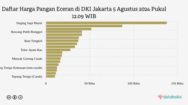 Berikut daftar lengkap harga 19 bahan pangan di DKI Jakarta menurut Bapanas 5 Agustus 2024 pukul 12.09 WIB.
