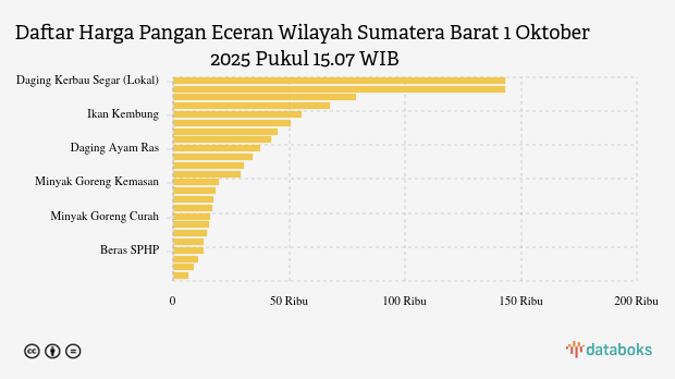 Berikut daftar lengkap harga 24 bahan pangan di Sumatera Barat menurut Bapanas 1 Oktober 2025 pukul 15.07 WIB.