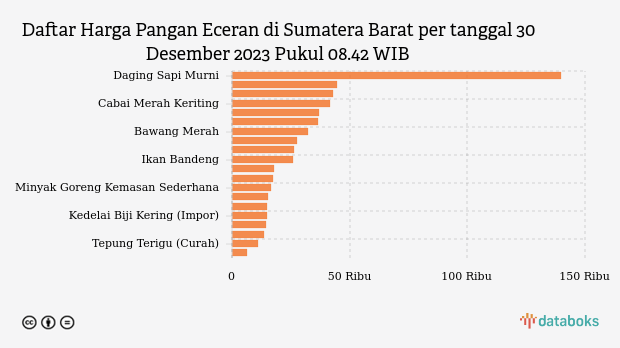 Berikut daftar lengkap harga 20 bahan pangan di Sumatera Barat menurut Bapanas per tanggal 30 Desember 2023 pukul 08.42 WIB.