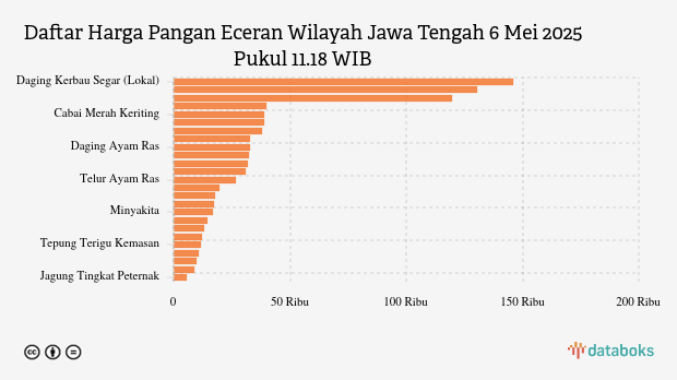 Berikut daftar lengkap harga 25 bahan pangan di Jawa Tengah menurut Bapanas 6 Mei 2025 pukul 11.18 WIB.