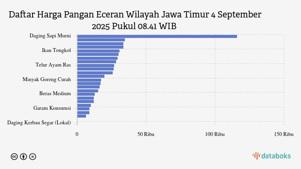 Berikut daftar lengkap harga 25 bahan pangan di Jawa Timur menurut Bapanas 4 September 2025 pukul 08.41 WIB.