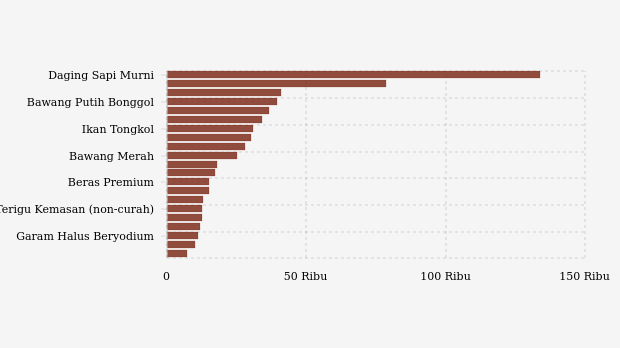 Sementara, harga beberapa komoditas seperti minyak goreng kemasan sederhana, bawang merah, ikan kembung, daging sapi murni, dan minyak goreng curah menurun dibandingkan dengan harga kemarin.