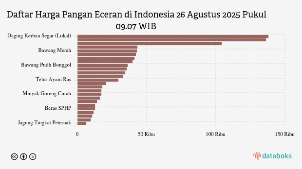 Berikut daftar lengkap harga 25 bahan pangan di Indonesia menurut Bapanas 26 Agustus 2025 pukul 09.07 WIB.