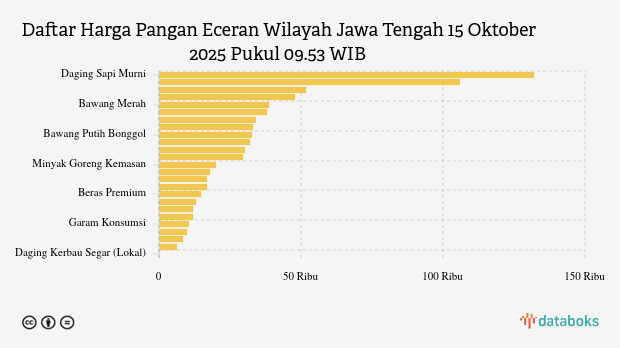 Berikut daftar lengkap harga 25 bahan pangan di Jawa Tengah menurut Bapanas 15 Oktober 2025 pukul 09.53 WIB.