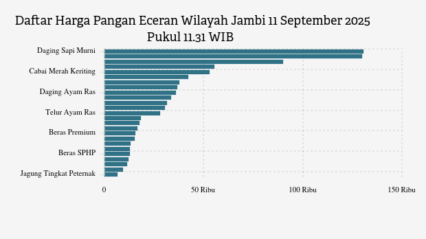 Berikut daftar lengkap harga 25 bahan pangan di Jambi menurut Bapanas 11 September 2025 pukul 11.31 WIB.