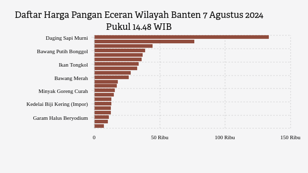 Berikut daftar lengkap harga 21 bahan pangan di Banten menurut Bapanas 7 Agustus 2024 pukul 14.48 WIB.