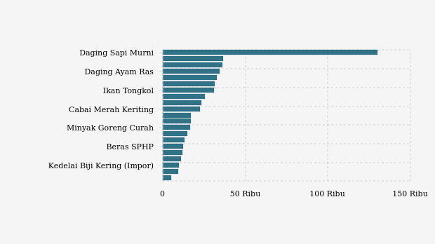 - Gula Konsumsi: Rp16.930 per kg (turun 0,18%)