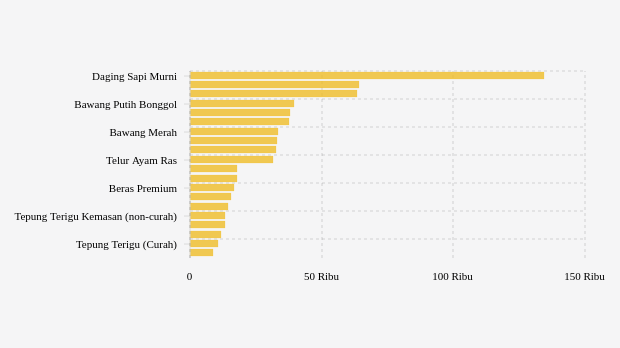 - Gula Konsumsi: Rp17.740 per kg (naik 0,06%)