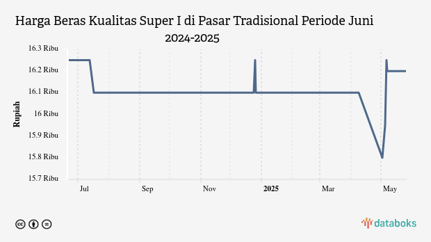 Adapun terhadap harga sebulan terakhir, perkembangan harga beras kualitas super I harian di pasar tradisional mengalami kenaikan dari sebelumnya yang tercatat sebesar Rp16,1 ribu .