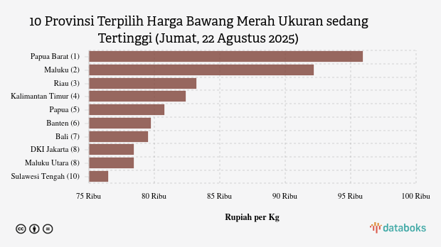 Harga Bawang Merah Ukuran sedang di Papua Barat Termahal Se-Indonesia (Jumat, 22 Agustus 2025)