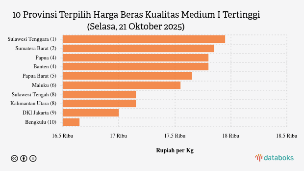 Harga Beras Kualitas Medium I di 10 Provinsi Ini Paling Mahal (Selasa, 21 Oktober 2025)