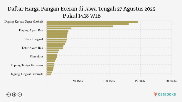 Berikut daftar lengkap harga 25 bahan pangan di Jawa Tengah menurut Bapanas 27 Agustus 2025 pukul 14.18 WIB.