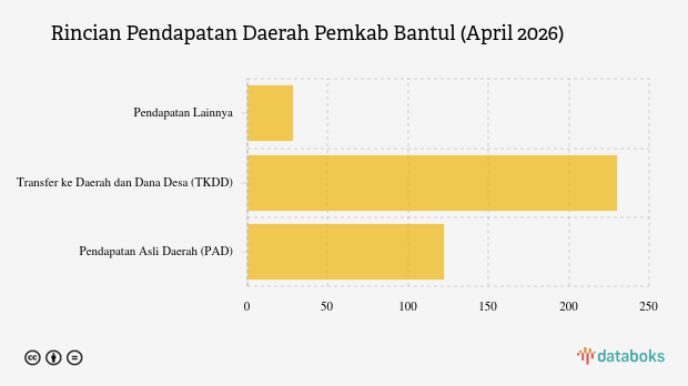 Merujuk data Anggaran Pendapatan dan Belanja Daerah (APBD) 2026, anggaran Pendapatan Daerah Pemerintah Kabupaten (Pemkab) Bantul, Provinsi DI Yogyakarta, sebesar Rp2.311,22 miliar.