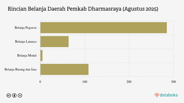 Selama periode Januari 2025 hingga Agustus 2025, realisasi Belanja Daerah Pemkab Dharmasraya mencapai Rp461,05 miliar atau setara 45,34% dari anggaran Belanja Daerah 2025.