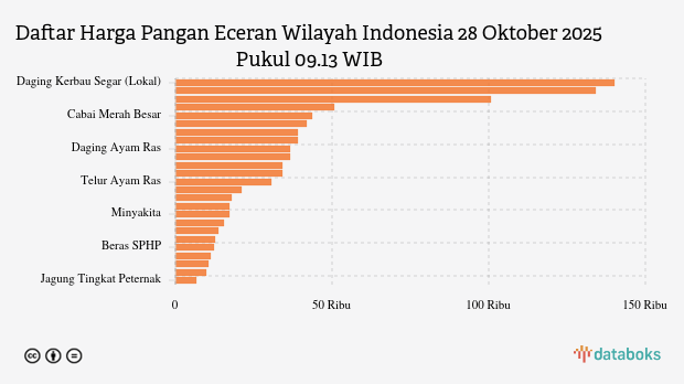 Berikut daftar lengkap harga 25 bahan pangan di Indonesia menurut Bapanas 28 Oktober 2025 pukul 09.13 WIB.