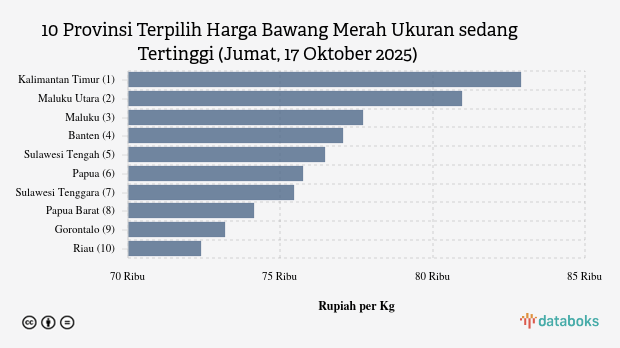 Harga Bawang Merah Ukuran sedang di Kalimantan Timur Termahal Se-Indonesia (Jumat, 17 Oktober 2025)