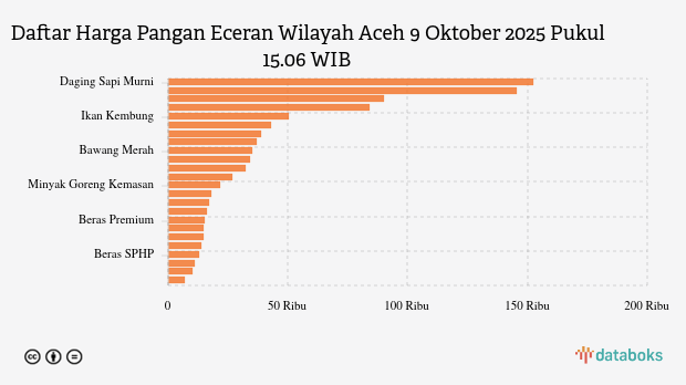 Berikut daftar lengkap harga 24 bahan pangan di Aceh menurut Bapanas 9 Oktober 2025 pukul 15.06 WIB.