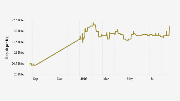 7. Gula Pasir per Kg Rp17,45 ribu per kg (tidak berubah)