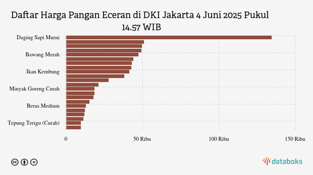 - Daging Sapi Murni: Rp134.333 per kg (naik 0,65%)