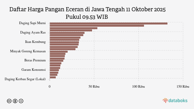 Berikut daftar lengkap harga 25 bahan pangan di Jawa Tengah menurut Bapanas 11 Oktober 2025 pukul 09.53 WIB.