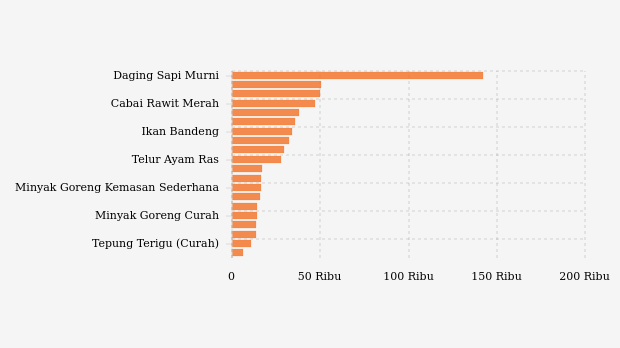 - Gula Konsumsi: Rp16.900 per kg (turun 0,29%)