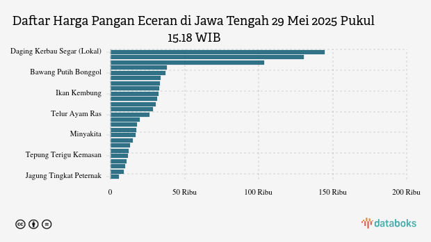 Berikut daftar lengkap harga 25 bahan pangan di Jawa Tengah menurut Bapanas 29 Mei 2025 pukul 15.18 WIB.